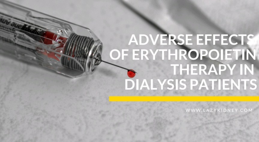 - Hypertension is the most common adverse effect associated with erythropoietin therapy, occurring in approximately 20–30% of patients treated. Most of the hypertensive problems occur during the acute correction of anemia rather than during the maintenance phase. Hypertension due to erythropoietin appears to be peculiar to renal patients, and very rare in non-renal patients receiving erythropoietin therapy. Erythropoietin-induced hypertension may be due to an inadequate reversal of the elevated cardiac output of anemia, increase in blood viscosity, increased endothelin production, reduced nitric oxide production, and possibly a direct pressor effect of erythropoietin. Hypertension is easily controlled by fluid removal and the use of standard antihypertensive drugs; it is very rare to have to stop erythropoietin for severe uncontrollable hypertension