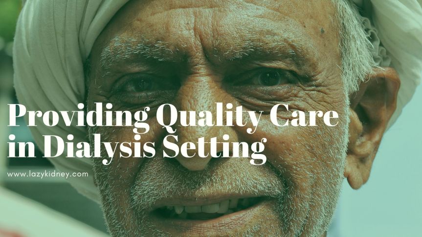 It is very difficult to measure the quality of care because it cannot be scaled or held against a measuring tape and can be able to analyze its composition. There are no direct measures of quality of care. Modification of physical stressors, improved support to dialysis patients, enhancing the quality of dialysis procedure provided by the treatment team, upgrading the facilities and equipment, and adaptation of an interdisciplinary approach are all believed to improve the care services. Still, we must keep in mind that for many dialysis patient’s quality of lives is more important than hospitalization.